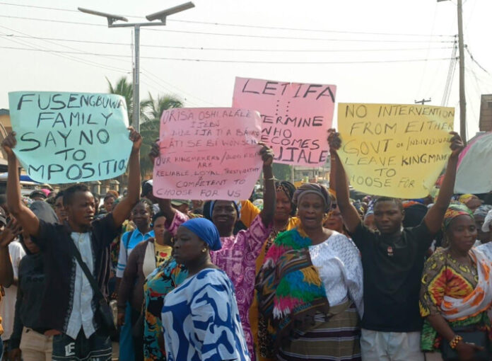 Members of the Fusengbuwa ruling house of Ijebu Ode on Friday staged a peaceful protest across the town, rejecting what they described as an alleged plan to impose a candidate in the ongoing process to select the next Awujale of Ijebuland.